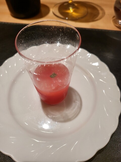 デザートは瀬戸内レモンのゼリー、品評会一位のい埼玉県あまりんを使った春のミルフィーユ。