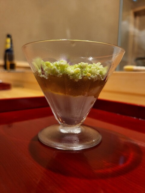 いつものスッポンの串焼き、フォアグラ最中(今回は、マンゴーとパッションフルーツ)、讃岐コーチンの玉鋼焼きも安定的な美味しさです。