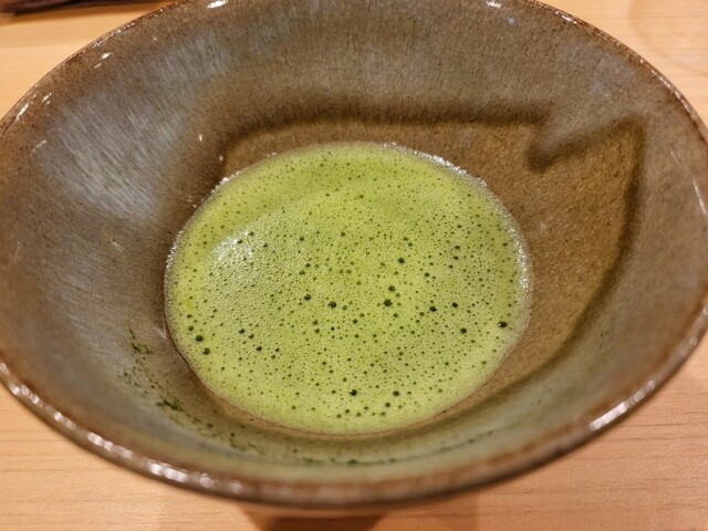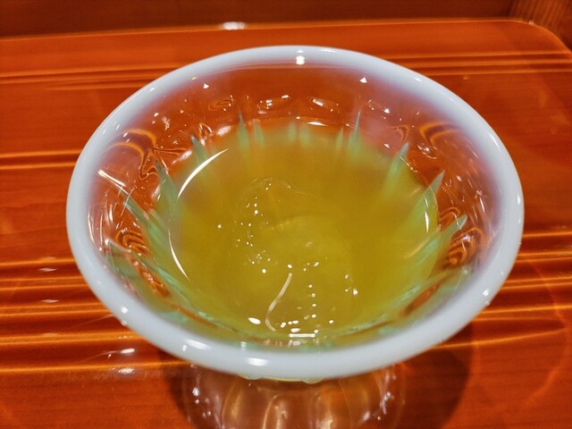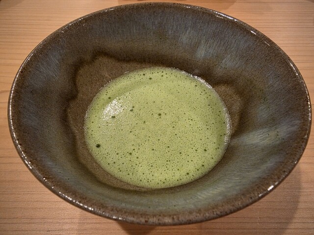 最後に、石川県の能登大納言を使った水羊羹をお抹茶と。