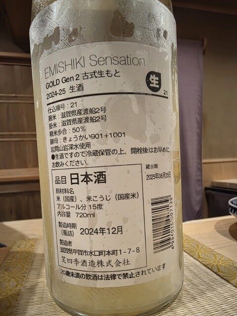 これは日本酒なのかと言うくらい、飲み口軽く、微炭酸な感じ。今まで飲んだどの日本酒とも違う。
