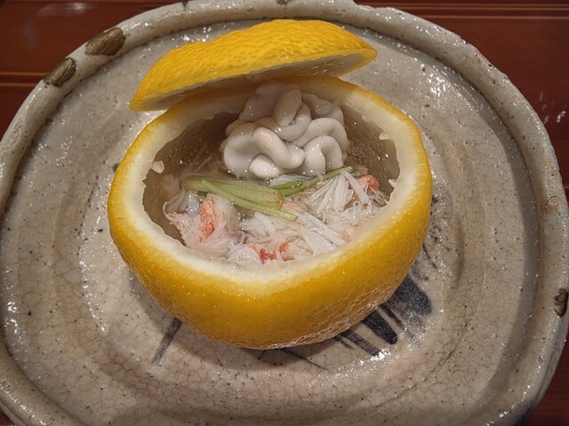 ◆柚子釜の蒸し寿司、白子や蟹