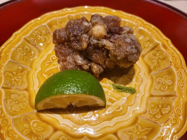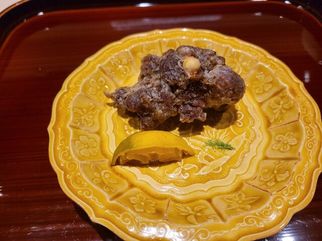 今週、銀座きた川さんにもお邪魔したのですが、すっぽんの唐揚げのタレ着けが先月のメニューに無くて残念に思っていたところ、赤坂 島袋さんで食べることが出来ました。