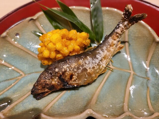 ◆山梨県の、とうもろこし(ゴールドラッシュ)と、岐阜県の長良川の鮎の天婦羅。頭から全て美味しく食べれました。
