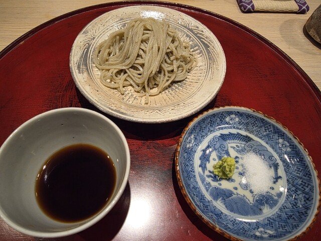 初めはわさびと塩だけで蕎麦の美味しさを感じます。