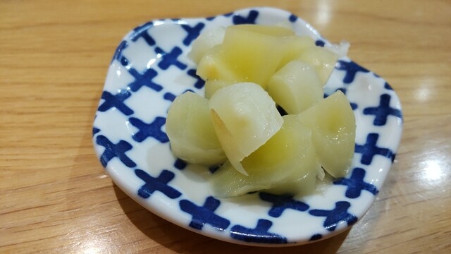 特に一品目のトロタクなんぞ、上に錦胡麻を振りかけて沢庵と胡麻の食感の違いが楽しめるだけではなく、トロの上品な脂が赤酢を包み込んでまろやかな旨味に変身させていました。