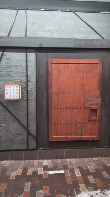 古町通に面したところによく画像で見る看板と重厚な板扉があり、まずはそこで記念写真。