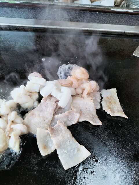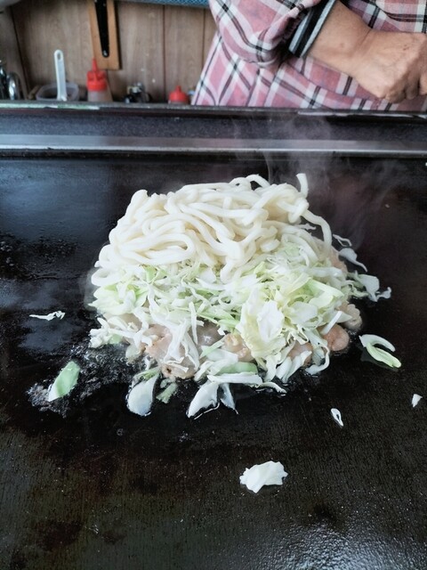 モダン焼き 豚 イカ エビ入り てっちゃん増量+150円 うどんで!