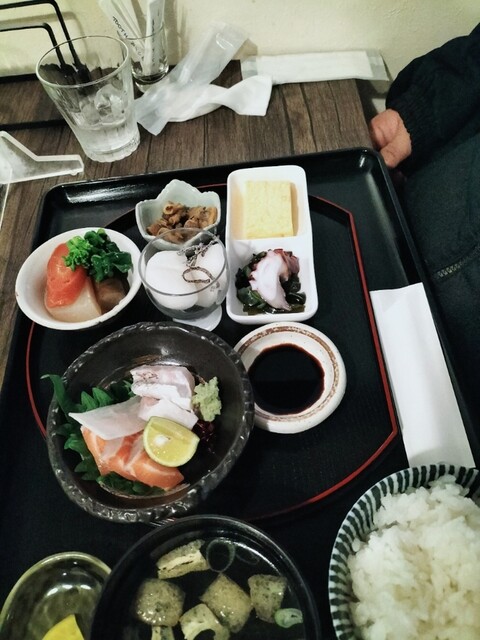 俺ゎ20食限定まるぶん定食1200円 お刺身 季節の小鉢 揚げ物 ごはん 汁物