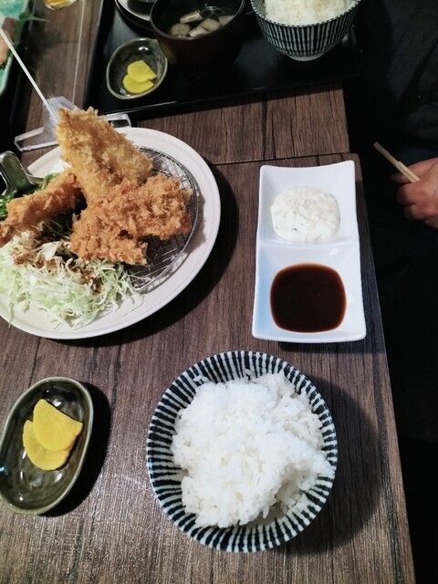 弟分ゎミニぶん定食1000円 お刺身 季節現金小鉢 汁物 ミックスフライ定食1050円