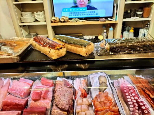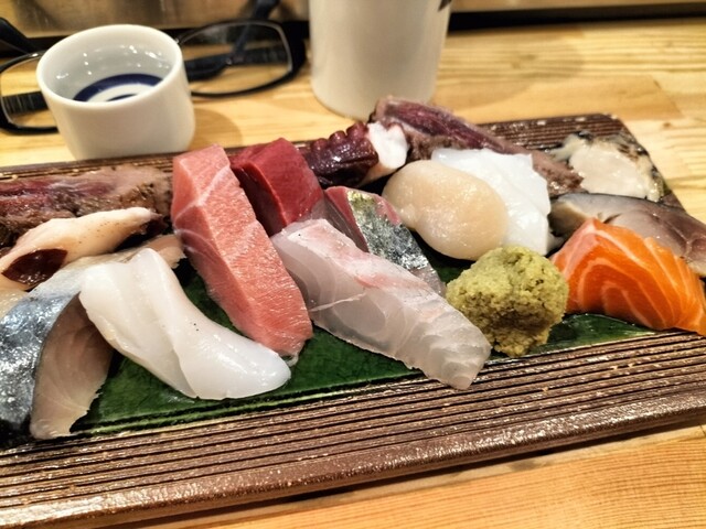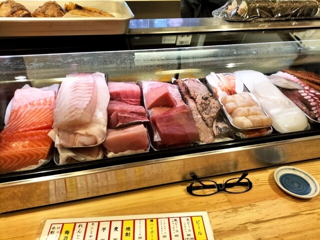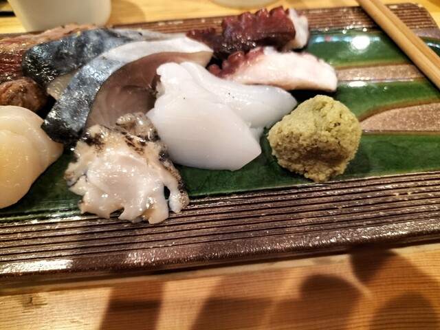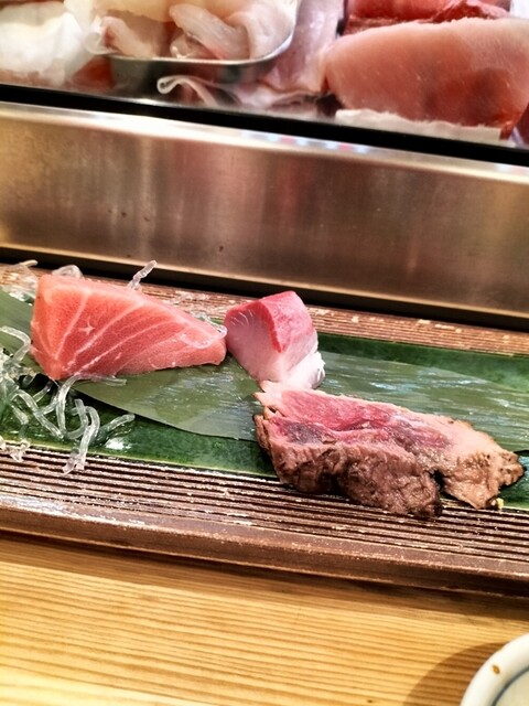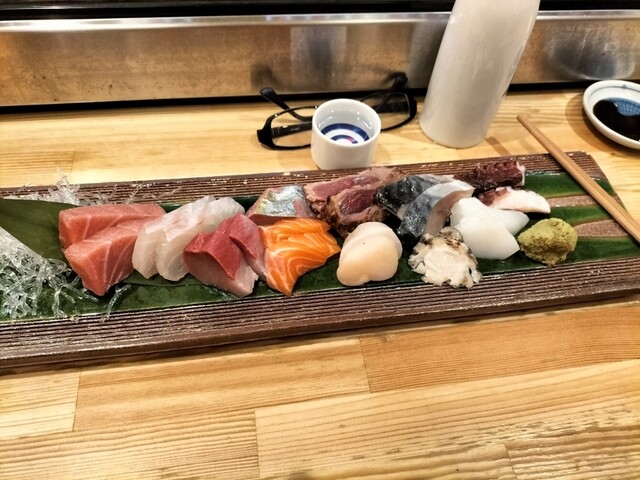 ★まぐろとろ ★たい ★かんぱち? ★はまち ★サーモン ★まぐろ頬肉たたき ★ホタテ貝 ★いか ★きずし ★さば? ★たこ ★あわび