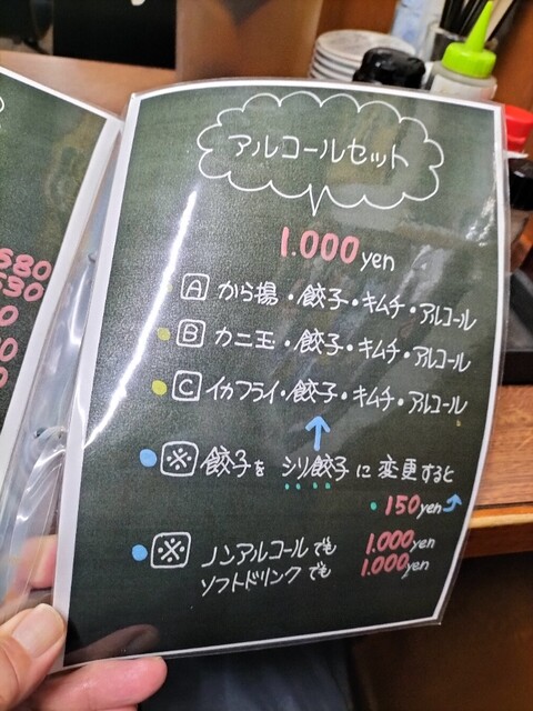 アルコールセット1000円 Aから揚 餃子 キムチ お好きなアルコール 中瓶おビールで!