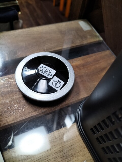 栓抜いて中瓶おビール550円を飲み干し、テーブルに呼出会計装置発見