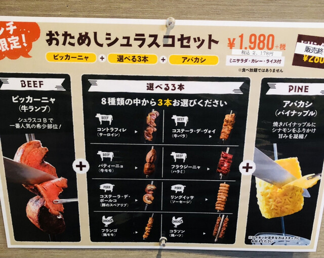 もうカレーライス、サラダ、スープだけで充分立派なランチセットで、これにシュラスコが付くから凄い。