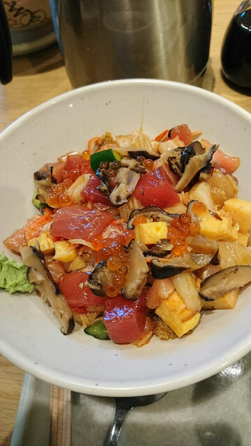 そして海鮮、きのこ、玉子などがまるで宝石箱のようなミニ丼ばらちらし