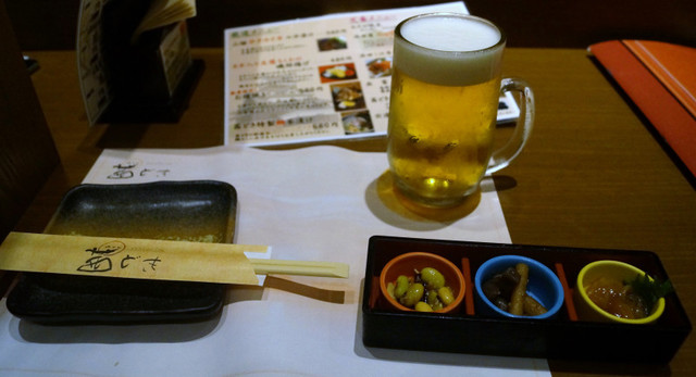 アルコール類を注文すると200円相当のお通しが付くので、実際は500円ではありません。