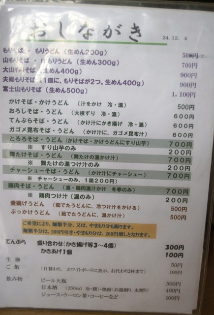 メニューはもりそば中心です。200g~500gまであります。