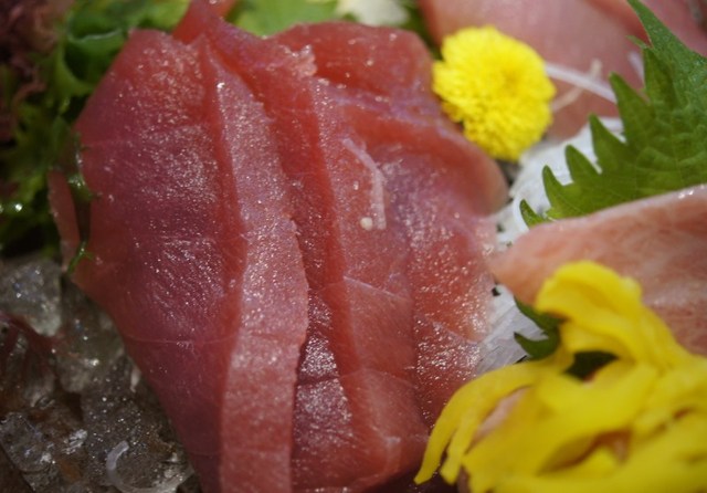 まぐろは下に氷が敷き詰めてあり、大トロ、中トロ、赤身、すり身が載っていました。