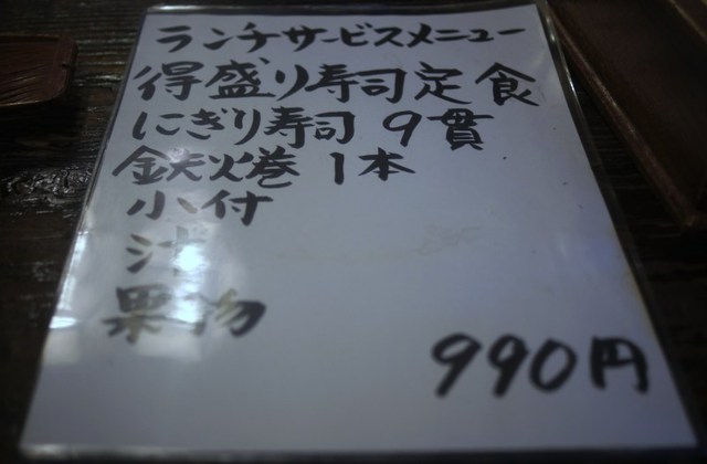 特盛寿司定食とランチのメニューが置いてあります。