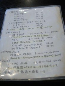 メニューはこれだけです。手打ち中華×2、チャーシューメン、ごまタンメン、ぎょうざ(3個)×4を注文しました。