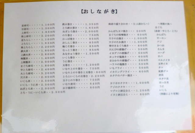 ランチはにぎり、ちらし、まぐろぶつヅケ丼、鉄火丼の4種類です。