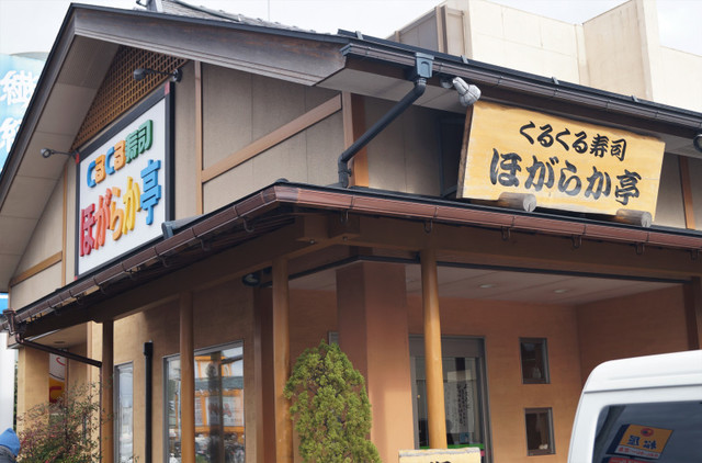 駅の喫茶店を出て歩いて30分程度、国道8号線上に回転すし屋“ほがらか亭”があります。