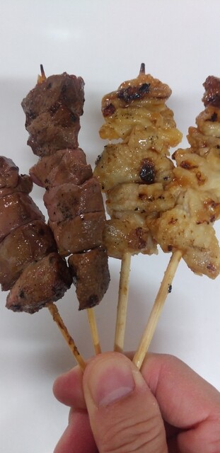 こちらは希望ヶ丘団地近くのお店です。夜になると車通りが多い割に周りは薄暗く、このお店の電光掲示板が目立ちます。建物は倉庫を回収したようなこぢんまりした感じです。注文カウンター前に長いすがあり(屋外)、風避けで囲まれています。なかなか穴場的な雰囲気です。メニューはよくある感じで、値段は80~110円ぐらいで、手羽先など大きめサイズは150円ぐらいします。本日はかしら、砂肝、せせり、レバー、つくね、ぼんじりを注文しました。レバーの食感が印象的でした!
