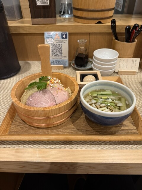 注文した鯛だし塩つけ麺も桶に入って登場。