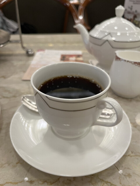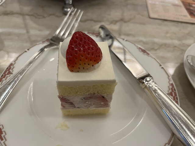 続いてイチゴのショートケーキ!美味しい!イチゴがすごく高級なやつ、前に他の物食べてなければ倍でも食べられたかもしれない。ここでポットで頂いた紅茶を飲みきり、お代わりにコーヒーを頂きました。