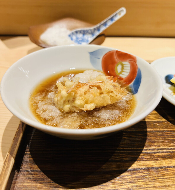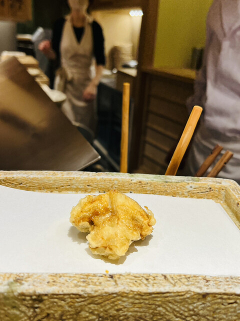 ◎真鱈の白子の天ぷらも熱いから気をつけて食べて下さい❗️