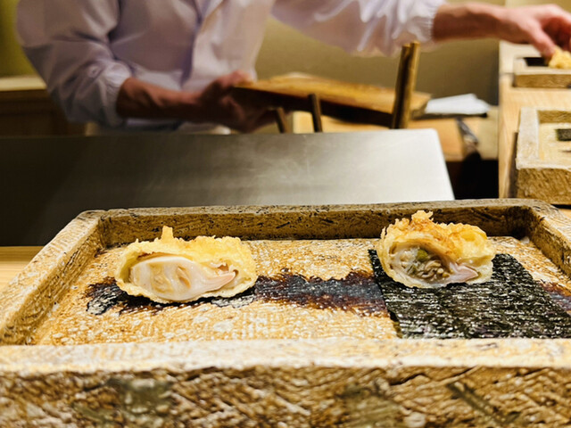 ◎牡蠣の天ぷらにエドノアキザケを合わせてくれる。