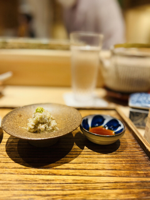 ◎蕎麦がきは風味豊かな味。生わさびと濃いめの蕎麦つゆで頂く。