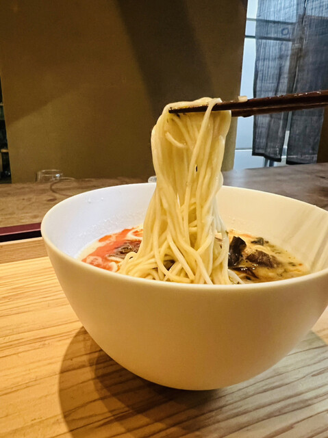 4月に完成したばかりの、『齋華』で初めて供される豚骨スープ麺。