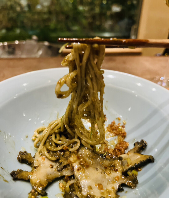 ◎麺は自家製。黒鮑と肝の和えそばは絶品❗️