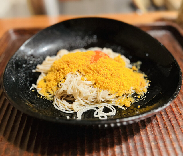 ◎野口大将から食事のメニューを告げられ、好きなご飯や麺類を好きなだけ提供される。『京天神野口』ならではの楽しいご飯である。