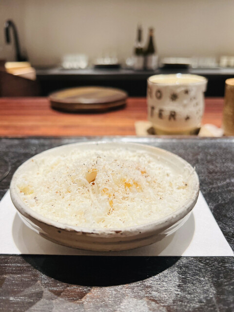 ◆ホタルイカ・ホワイトアスパラガス・吉田牧場のハード系チーズ・月光百合根 あけがらし乗せ