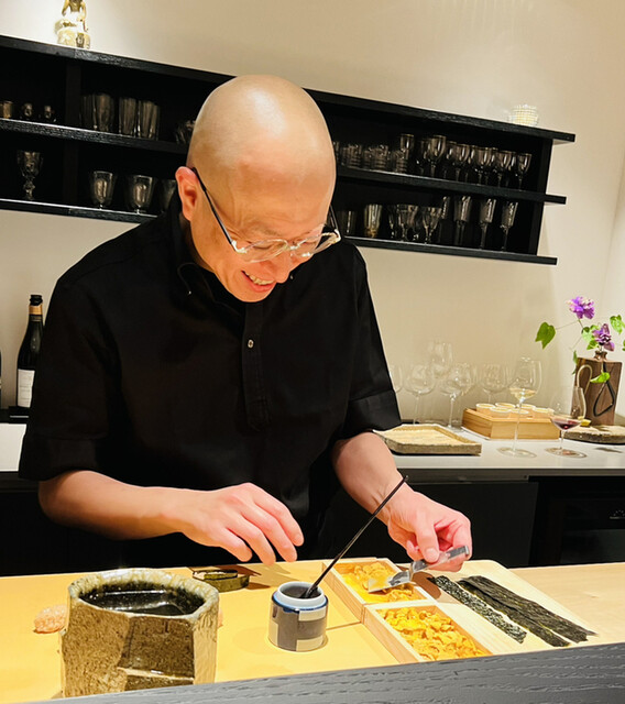 岡山の寿司の名店「ひさ田」の久田大将が京都にオープンさせた唯一無二の独創的な寿司屋である。