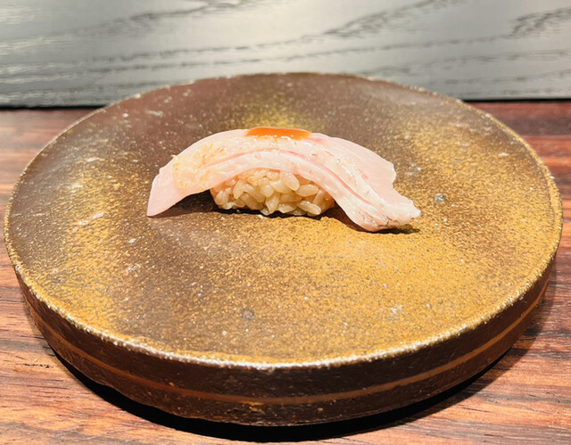 ◎バルサミコ酢で作るシャリは、さわやかさと軽い甘味を感じる。鬼才の久田さんならではの寿司。