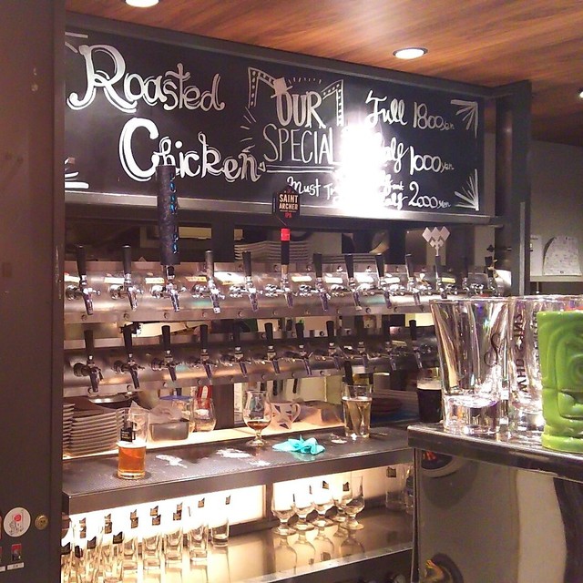 クラフトビールが30種サーバーから提供される様子は圧巻です。日替りで樽が替わるのでメニューがコロコロ変わって飽きさせないようになっています。アルコール度数の幅があるのでお酒の強くない方も楽しめると思います。ビールのサイズもパイントサイズ780円もありますが、グラスもあり種類を楽しむことが出来ます。しかも480円とリーズナブルです。