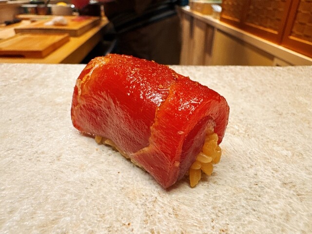 染み染みなマグロと赤酢飯の相性がバッチリです。