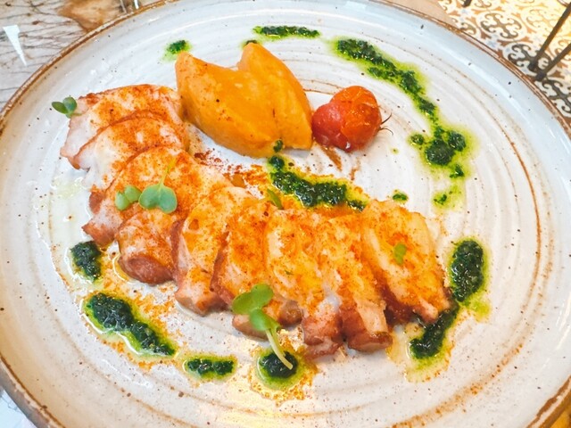 ・タコのソテースパイシーマッシュ添え