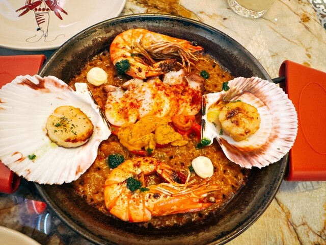 海老、雲丹、タコ、魚介の出汁が出ていて美味しいパエリアです。