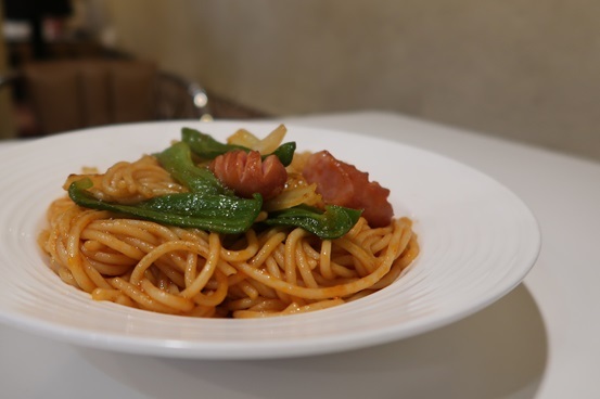 コーヒーとのセットにして、ナポリタンたまごサンドを注文してシェア。