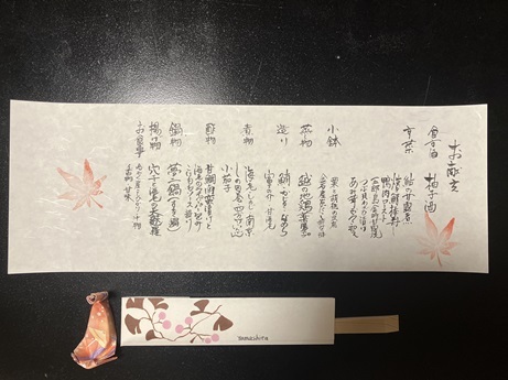 夕食は、金沢港で水揚げされた新鮮魚介と旬の山の幸の創作和会席。