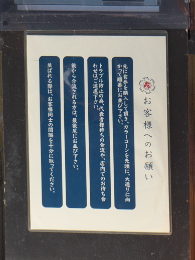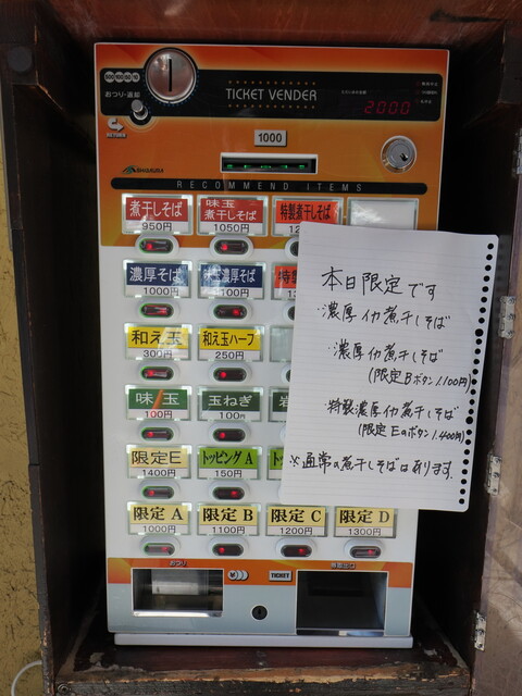 前のお客さんに続いてワタクシも食券を買います。券売機は店外にあり、ボックス状の蓋つきケースに格納された小さ目のものです。