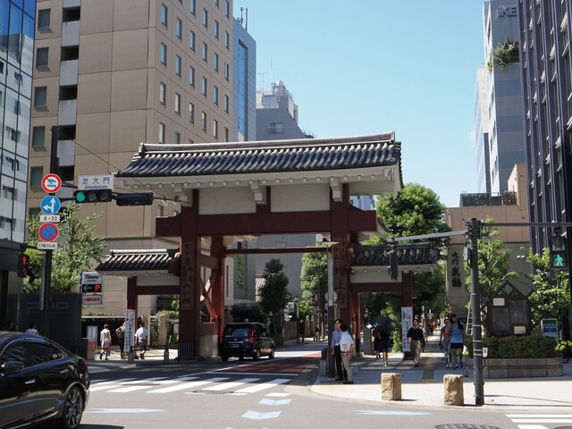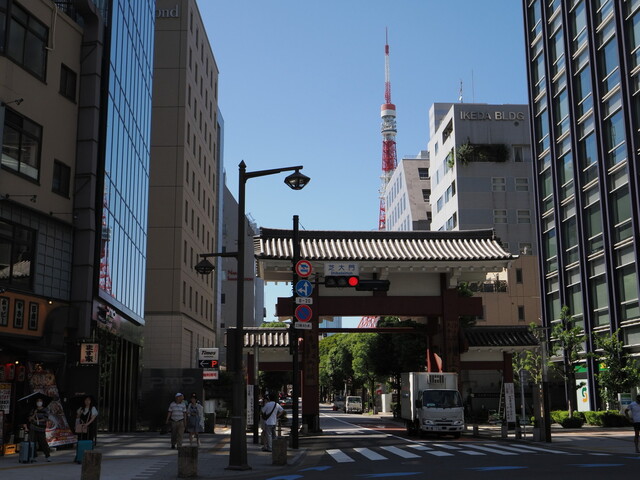 増上寺大門と東京タワー。左の吉野家のところを曲がるとお店