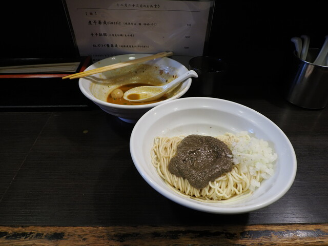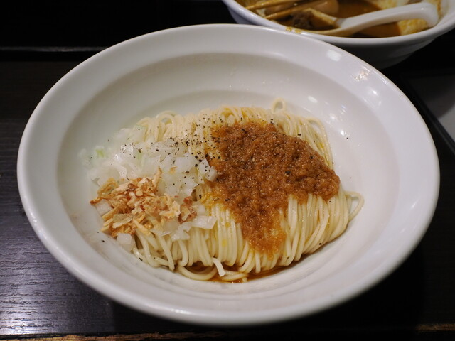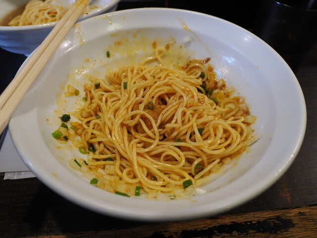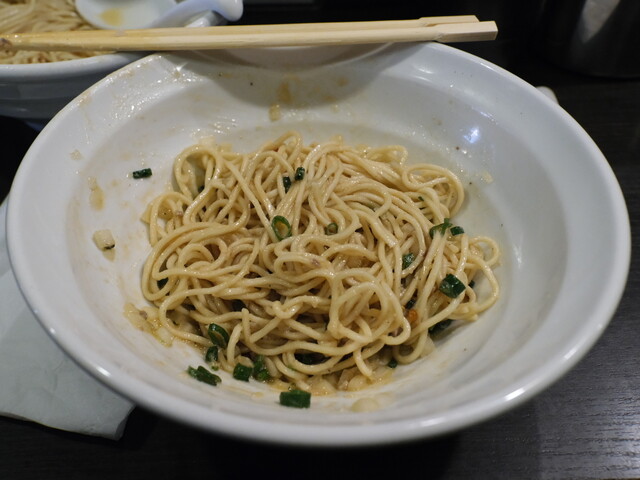 お味は、これは旨い!旨みたっぷりでバランスがよい。ごまは使われているようですが、控え目で、煮干しの旨味をコクで引き立てている感じです。辛さもわりと控えめ。いやー、おいしい。やっぱりバランスがいいですな。