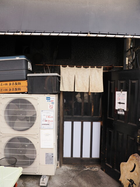 土曜の昼時、混んでるのかな?と思って行ってみれば、行列場所の駐車場には待ち人4人。案外すいていました。まもなく店員さんが出てきて、先頭の4名様をご案内。この際、注文をきかれました。待つこと20分ほどでワタクシも入店。入り口でお水を汲んで奥から詰めて座ります。