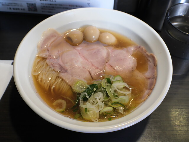 吟鱗は淡麗系です。スープは透明感のある茶色。イカ煮干しを使うと黒っぽくなるのが普通ですが。お味もスッキリ。イカ煮干しによくある甘みも感じません。そこがいい。ワタクシは好みです。おいしい。