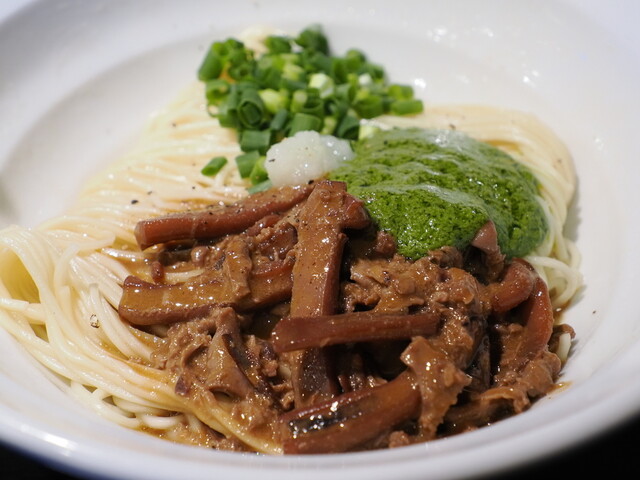 これは旨い! 天然ブリの”和え”つけ蕎麦 & ブリアヒージョの和え玉