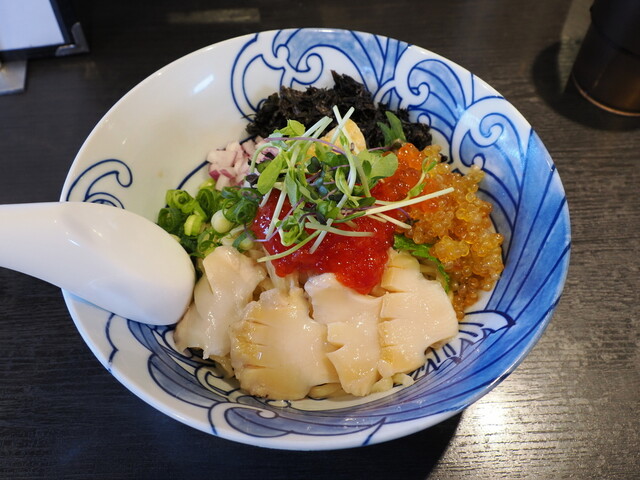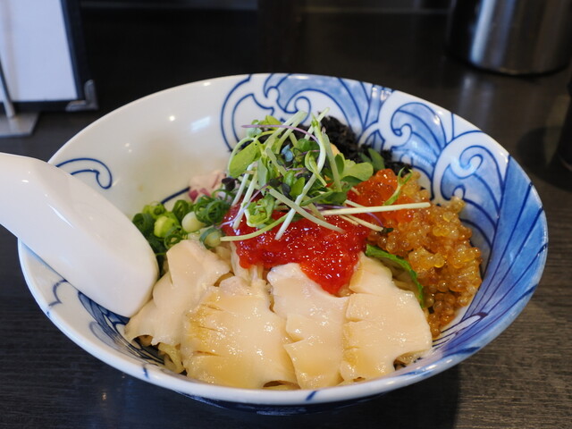 おお、バラ海苔がどんぶりにいっぱい。まるで若武者さんの「若武者ブラック」のよう。他にもこんなに海苔をのせる店があったとは。